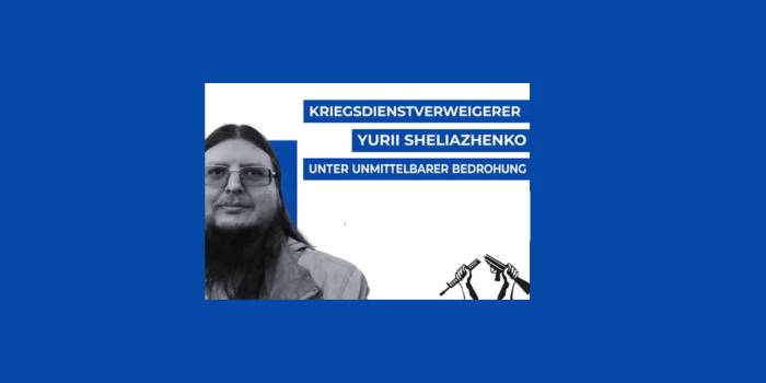 Der ukrainische Kriegsdienstverweigerer und Menschenrechtsverteidiger Yurii Sheliazhenko steht derzeit unter akuter Gefahr festgenommen und zwangsweise im Rahmen der allgemeinen militärischen Registrierung der Ukraine eingezogen zu werden.